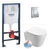 Contenu du pack WC Grohe Rapid SL + cuvette sans bride Swiss Aqua Technologies fixations cachées + plaque Grohe Skate Cosmopolitan chrome :Cuvette suspendue sans bride et fixations invisibles + abattant frein de chute (SATBRE010RREXP) Bâti-support Rapid SL pour WC pour mur porteur 1,13 m (38528001) Plaque de déclenchement Skate Cosmopolitan (38732000)...