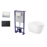 Grand choix de sets WC avec cuvette suspendue, bâti-support, plaque de commande et kits de fixation.