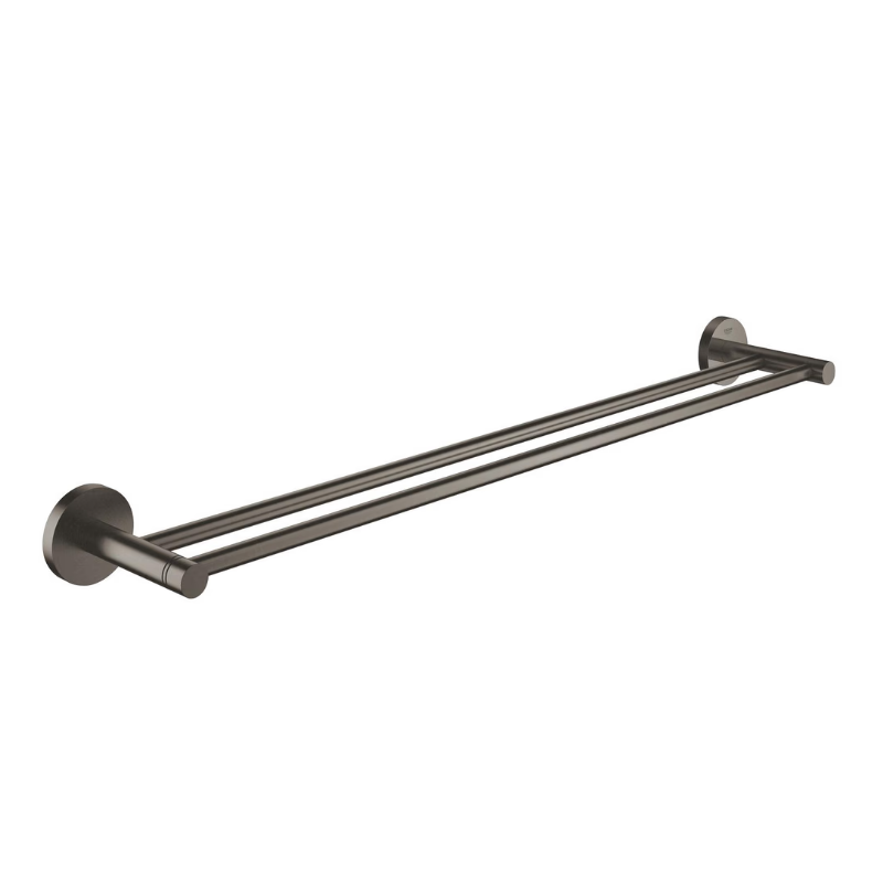 Le double barre porte-serviettes GROHE Essentials en finition Brushed Hard Graphite – du style et deux fois plus d'espace de rangement !