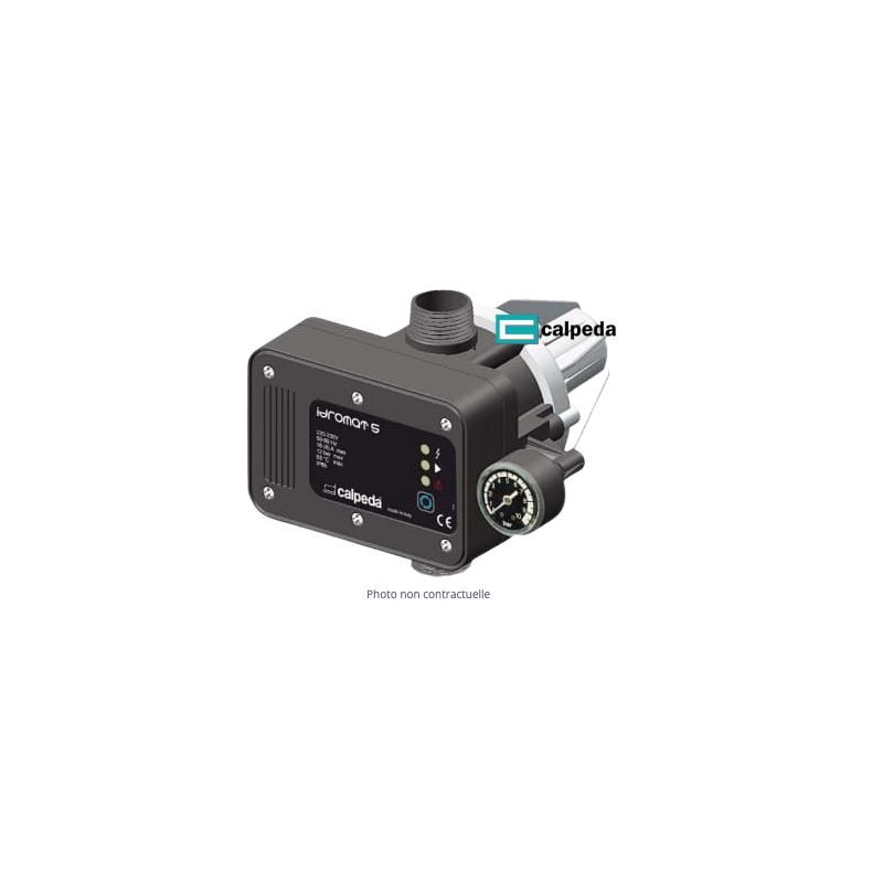 Le régulateur électronique IDROMAT 5 de la marque CALPEDA est un appareil automatique qui permet de contrôler votre pompe de surface à l'aide d'un dispositif de contrôle de pression et de débit connecté à un système électronique. Il permet de commander le démarrage de la pompe à l'ouverture des robinets et l'arrêt à la fermeture.
