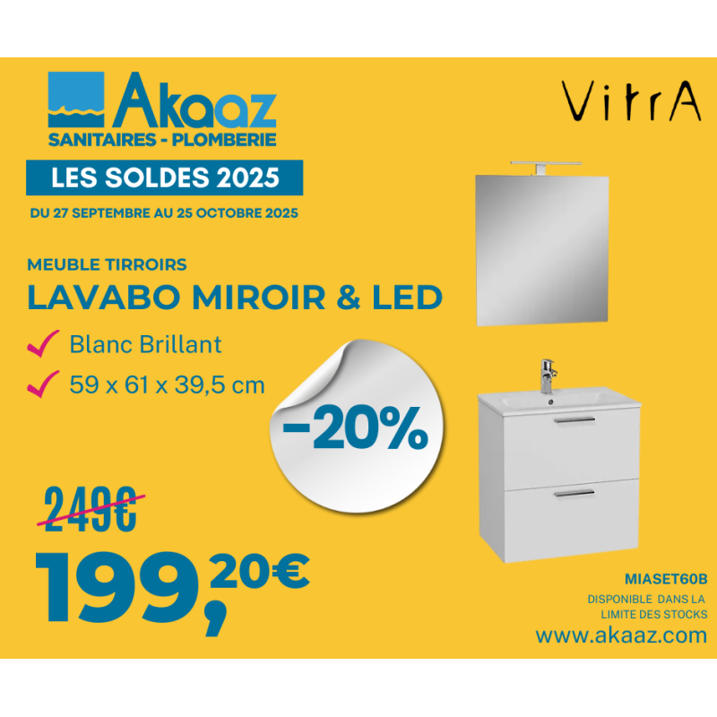 Informations complémentaires sur Vitra Meuble tirroirs, lavabo miroir & led 59x61x39,5, Blanc