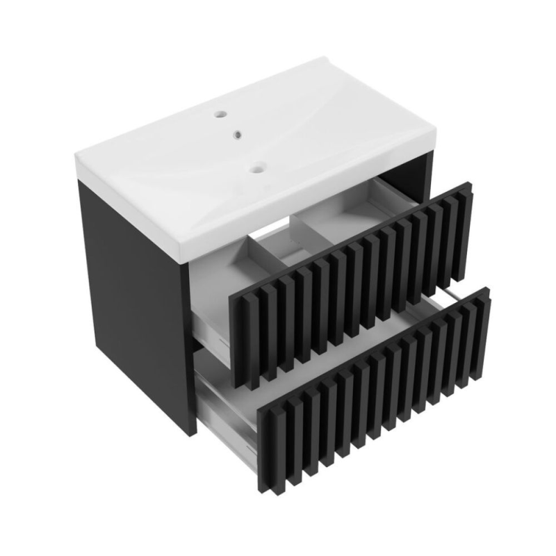 Nous vous présentons notre nouveauté, le meuble de salle de bain SAT Delano avec lavabo en finition noire. Ce meuble n'est pas seulement un élément pratique et fonctionnel de votre salle de bain, mais apporte également à votre intérieur une touche de design d'intérieur contemporain - lattes verticales.