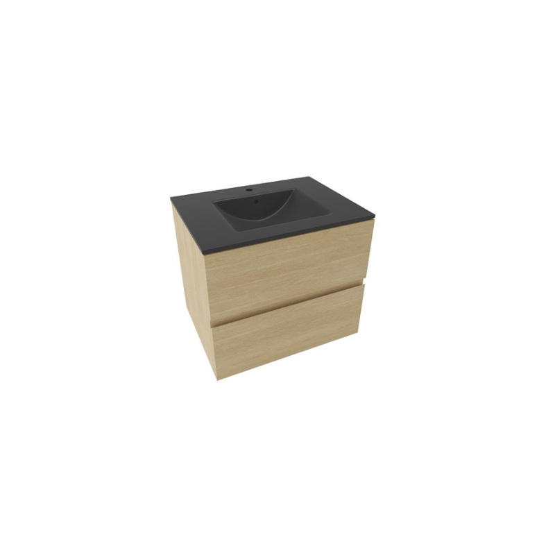Meuble de salle de bains mural avec vasque en céramique, décor bois clair, surface mate, dimensions 60x50x45,5 cm. Surface en finition stratifiée.