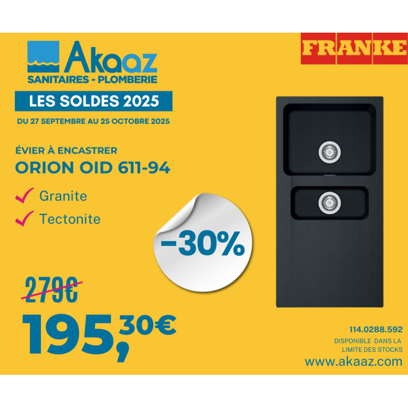 Informations complémentaires sur Franke Orion - OID 651 Tectonite® Carbone Evier (OID651C)