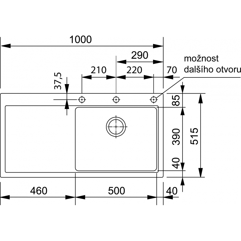• Évier MYTHOS 1000x515mm droite en fragranit +, Onyx