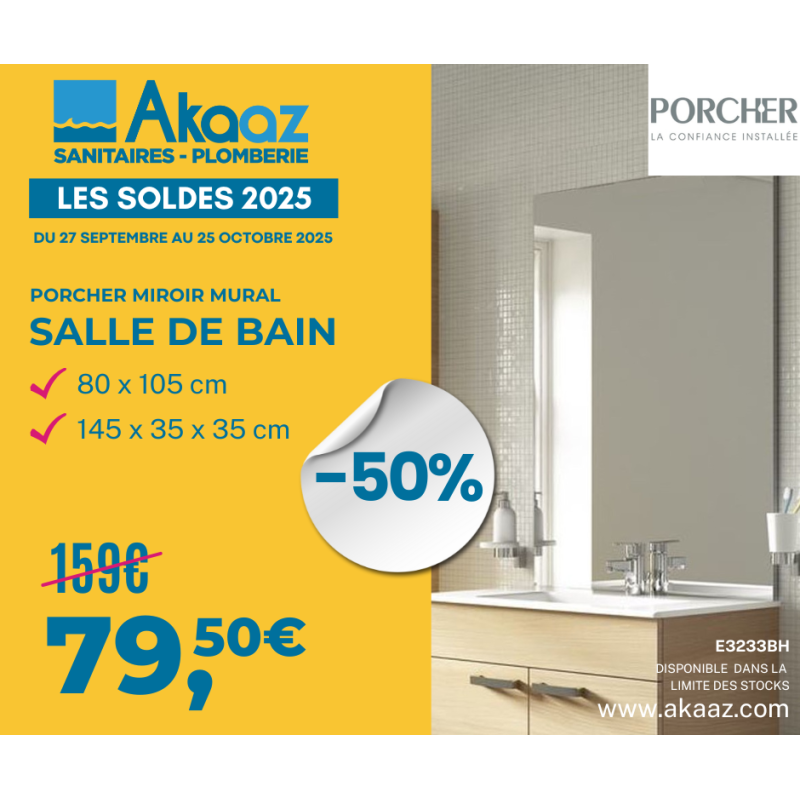 Miroir haut 80 x 105 cm Ulysse sans éclairage, pour pose sur lavabo-plan. Livré avec une protection plastique à installer autour de la partie basse pour protéger le miroir des jets d'eau et de l'humidité. Épaisseur : 2,5 cm.