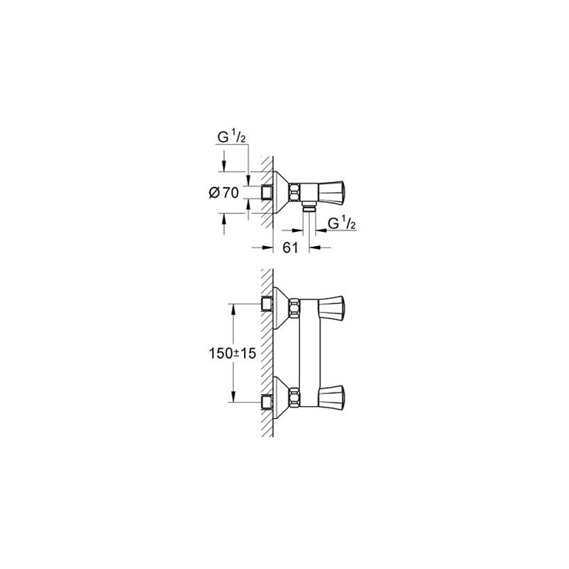 Montage mural apparent, Poignées métal, A isolation thermique, Peut être vissé, Tête Longlife à clapet, Raccord douche 1/2", Raccords en S, GROHE StarLight® brillance durable