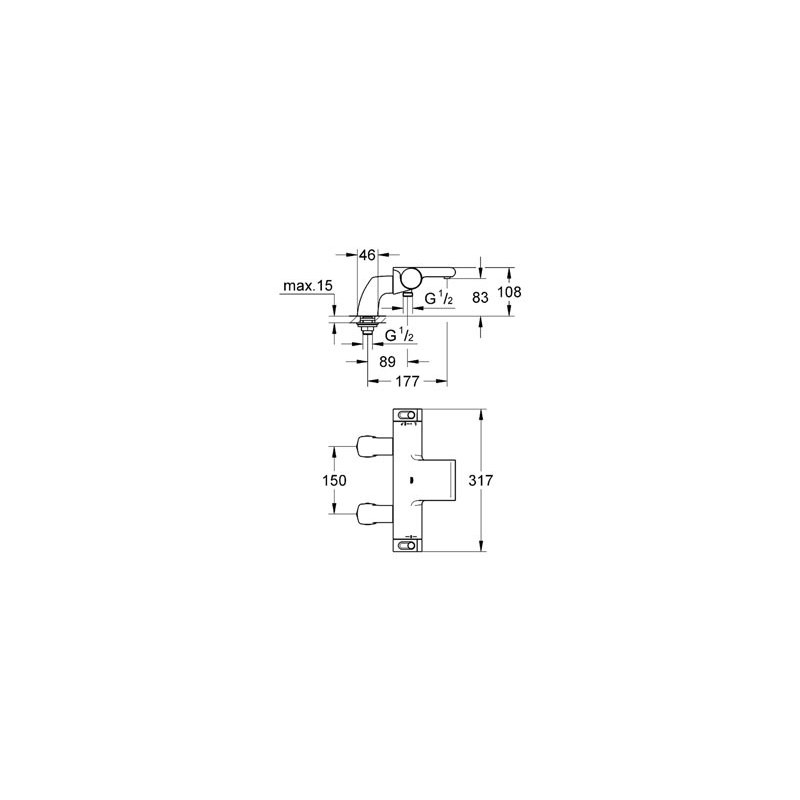 Mitigeur thermostatique bain/douche 1/2"