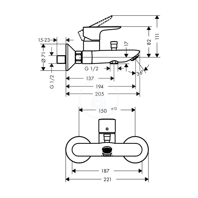 Débit du raccordement de la douchette sous 3 bar: 17 l/min