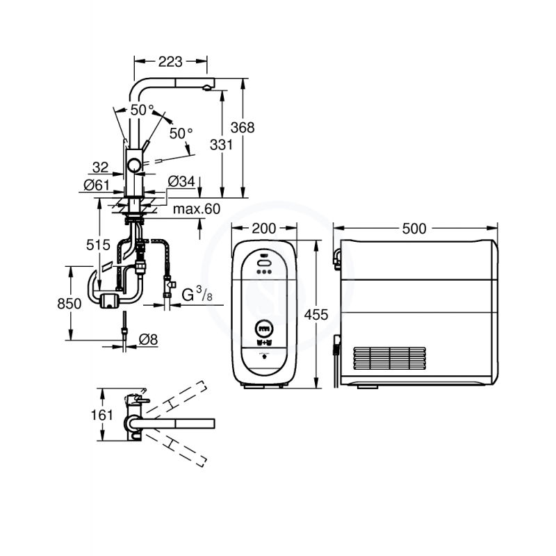 Ajustable pour le filtre GROHE BLUE taille S; le filtre à charbon actif et le filtre magnésium