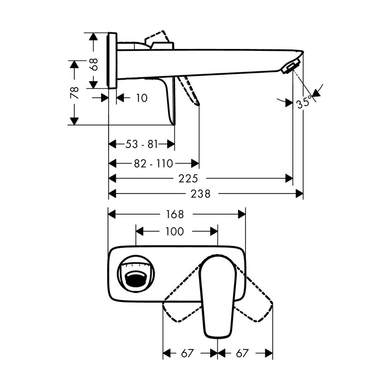 • Mitigeur de lavabo encastré mural bec 225mm Talis E, Chrome