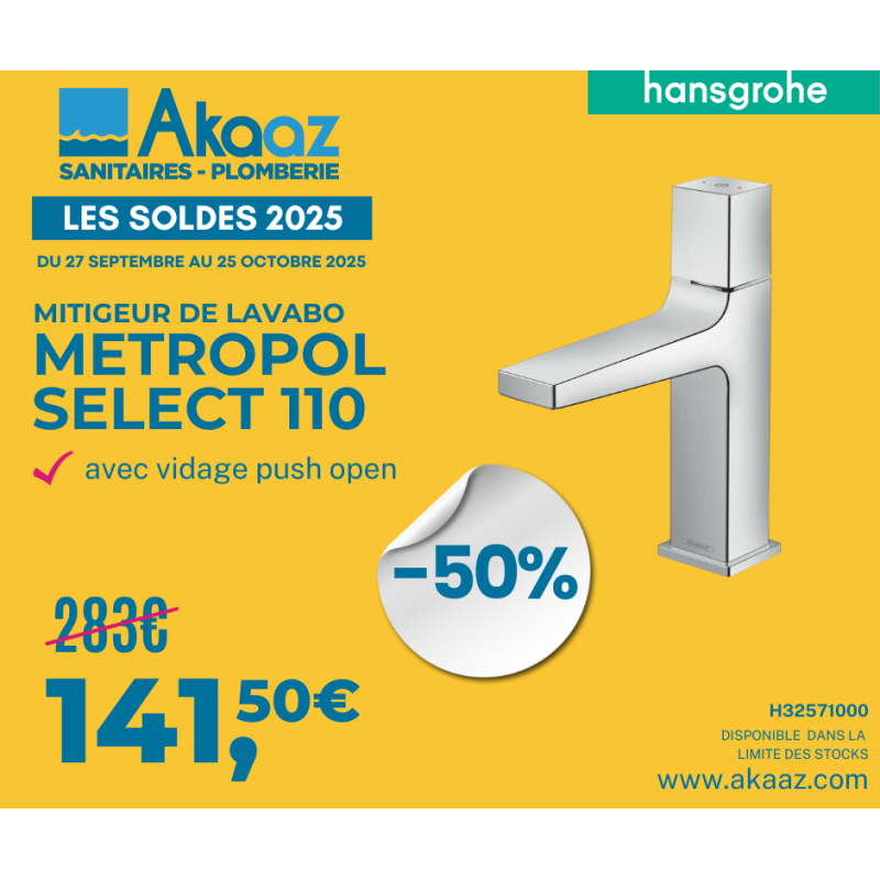 En stock à Jarry Promo ! Mitigeur de lavabo Metropol Select 110, ChromeAgrandir l'image
