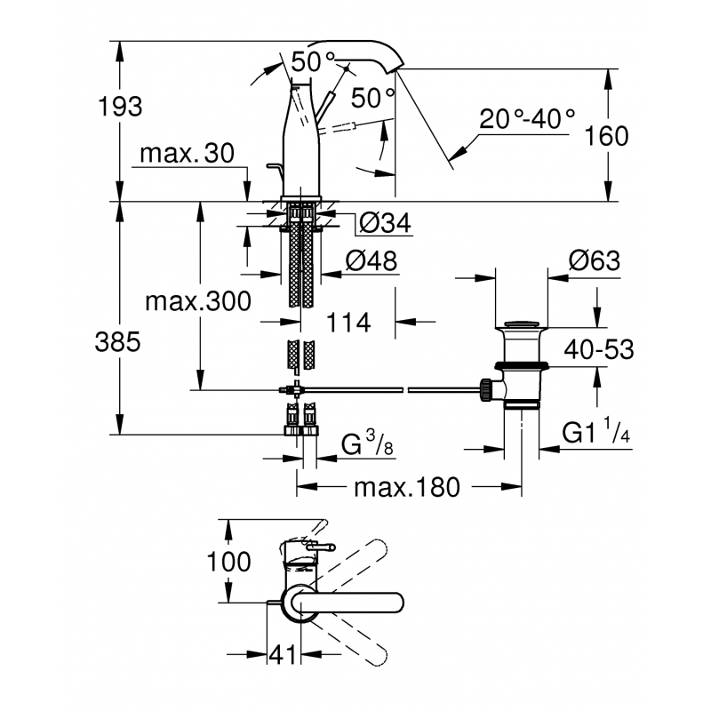 Grohe Mitigeur lavabo M Essence, Cool Sunrise