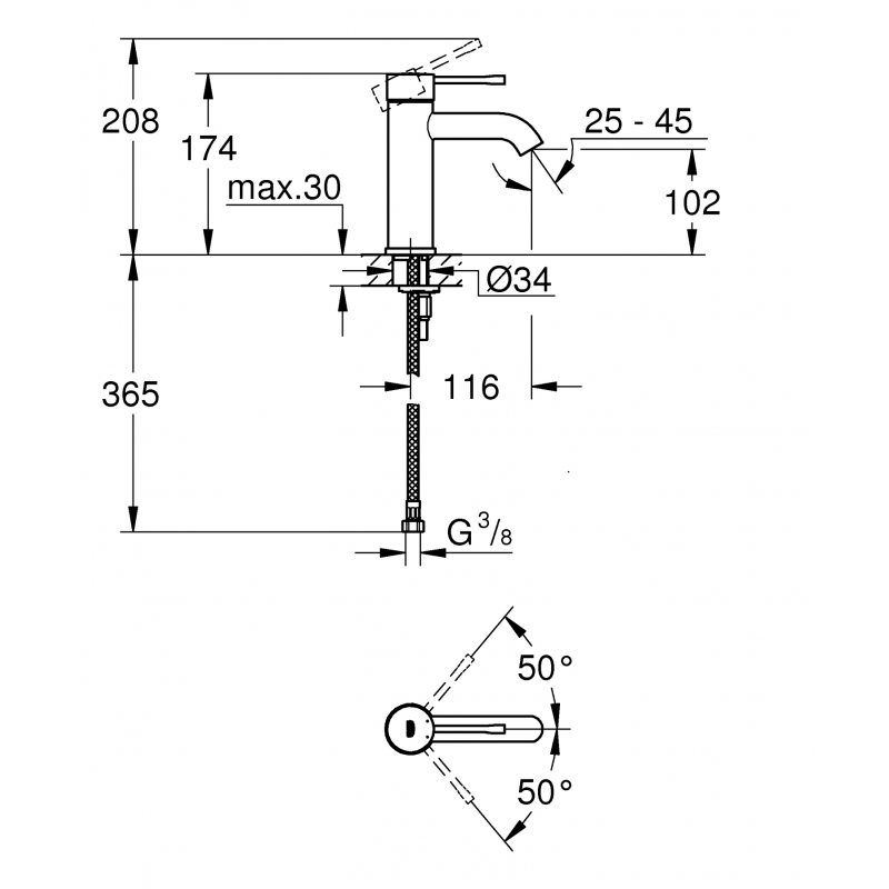 • Essence mitigeur monocommande Lavabo, taille S
