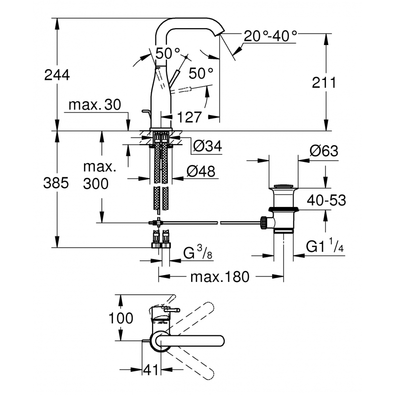 • Essence, mitigeur monocommande Lavabo, taille L