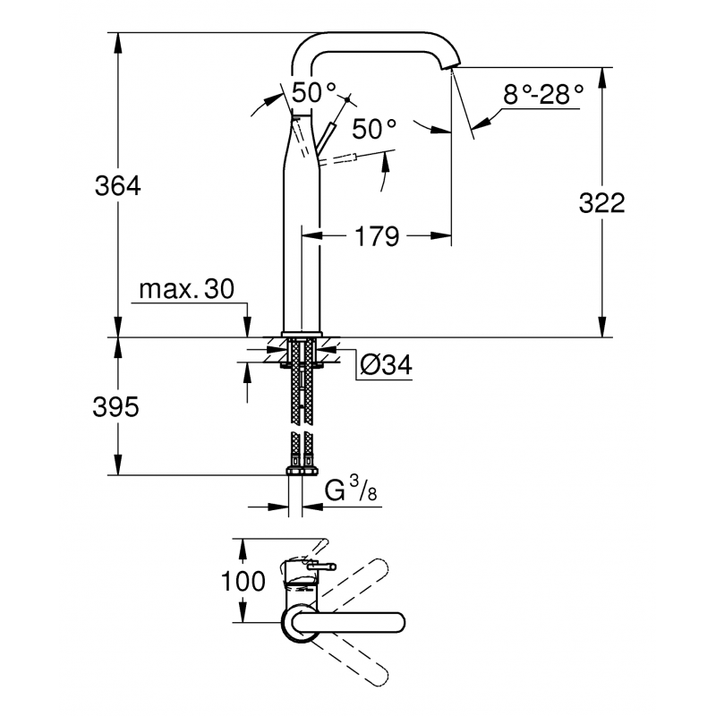 • Essence mitigeur monocommande Lavabo Taille XL