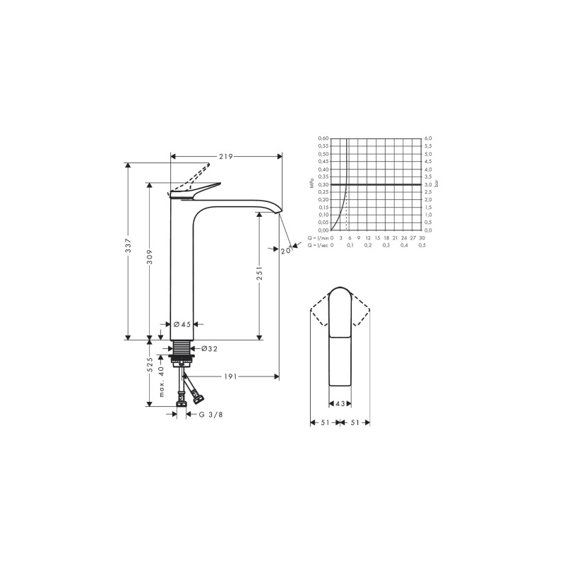 • Vivenis Mitigeur de lavabo surélevé 250 sans tirette ni vidage, bec cascade, noir mat (75042670)