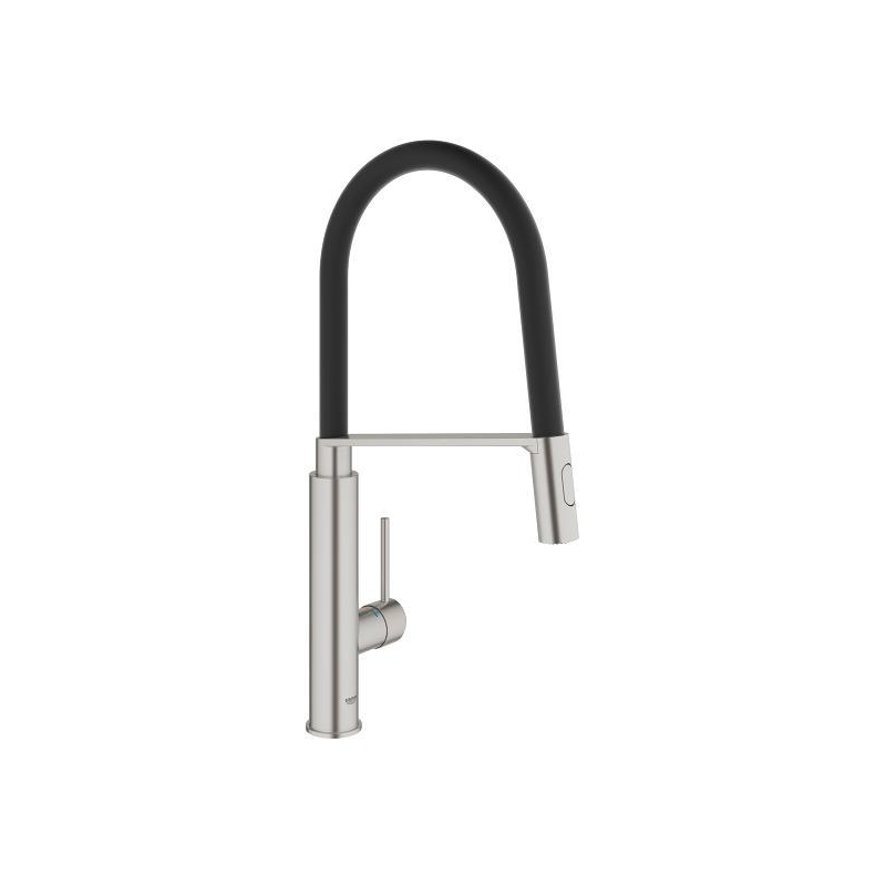 Vous avez besoin d'un robinet de cuisine à la pointe et qui permette de faire le travail ? Ne cherchez plus : le robinet à mitigeur monocommande GROHE Concetto Professional est le choix idéal. Son style industriel brut est très actuel et mettra en valeur votre projet de cuisine contemporaine, mais la vraie beauté repose dans sa fonctionnalité, dès le montage avec le système d'installation rapide. Il s'adapte facilement sur un îlot central ou sous des placards fixés au mur, vous offrant une grand flexibilité en matière d'aménagement. Le bec s'oriente à 360? afin d'atteindre le moindre recoin de l'évier et le jet professionnel est idéal pour nettoyer les légumes, remplir des récipients et même passer d'un bac à l'autre dans un évier double. Les deux types de jet, un jet standard et un jet puissant, offrent encore plus de flexibilité. Le système EasyDock M fait en sorte que la douchette, guidée par un puissant aimant, se rétracte automatiquement et correctement dès que vous avez terminé. Ce robinet est également facile à entretenir grâce au flexible en silicone GROHFlexx qui se nettoie d'un simple geste de la main et aux buses en silicone SpeedClean dont les dépôts calcaires s'éliminent du bout des doigts. À l'intérieur du mitigeur monobloc, la technologie SilkMove® assure un contrôle souple et précis du débit et de la température de l'eau pendant toute la durée de vie du produit. En outre, la superbe finition mate métallique SuperSteel est résistante aux rayures et durera pendant des années. Le temps est venu pour vous de prendre le contrôle de votre cuisine comme un vrai professionnel !