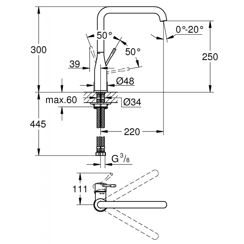 The timeless silhouette of the GROHE Essence mixer conceals great performance and a wealth of useful features. Flexibility and convenience is key, with a choice of three swivel settings – 0°/150°/360° – designed to suit any kitchen layout or task. The pull-down solid metal Comfort spray head has two options – a standard spray and powerful jet spray – that can be switched between with just the push of a button. It’s perfect for achieving a multitude of kitchen tasks with ease, from filling pots to washing vegetables, and cleaning up afterwards. It also extends across the width of a double sink. When you are finished the GROHE EasyDock system also means that the spray head retracts easily back into place. This monobloc mixer contains GROHE SilkMove technology to ensure smooth, accurate water and temperature control for years. Installation is quick and easy thanks to flexible connection hoses and a set of straightforward instructions. Plus the sparkling GROHE StarLight chrome finish is scratch-resistant for a dazzling surface designed to last.