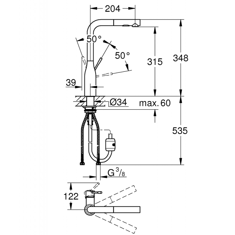 Douchette extractible - inverseur double sens entre jet mousseur et jet pluie
