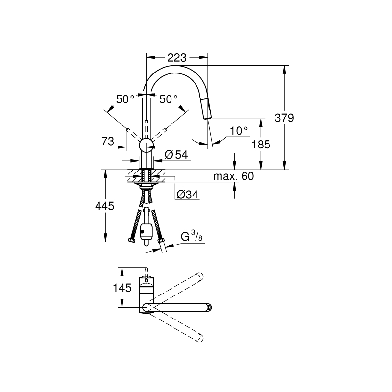 Grohe Mitigeur évier douchette extractible Minta, Chrome