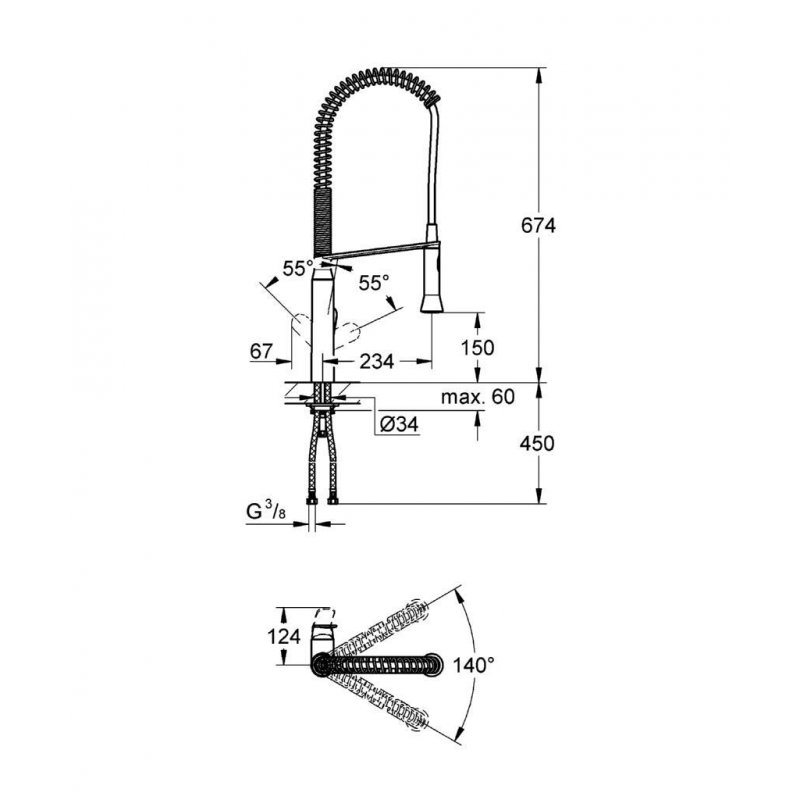 Zone de rotation 140°
