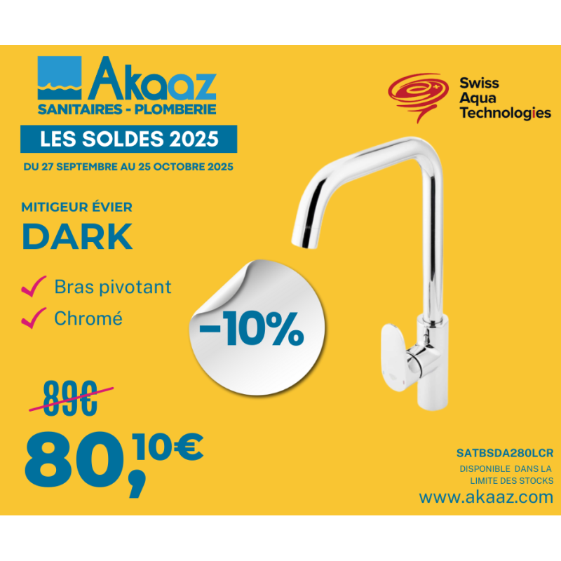 En stock à Jarry Promo ! Mitigeur évier Dark avec bras pivotant, ChromeAgrandir l'image