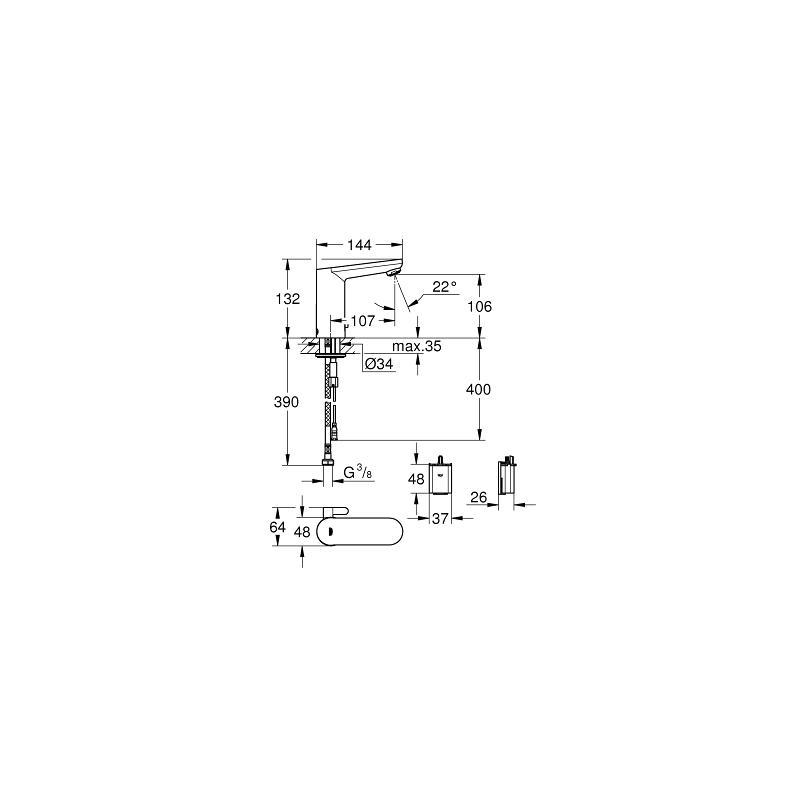 Grohe Mitigeur lavabo infrarouge Eurosmart Cosmopolitan E, Chrome