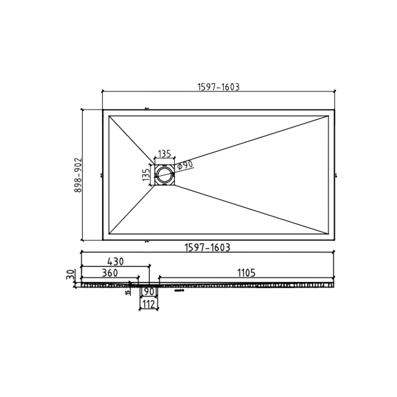 | Longueur | 1600 mm | Largeur | 900 mm | |