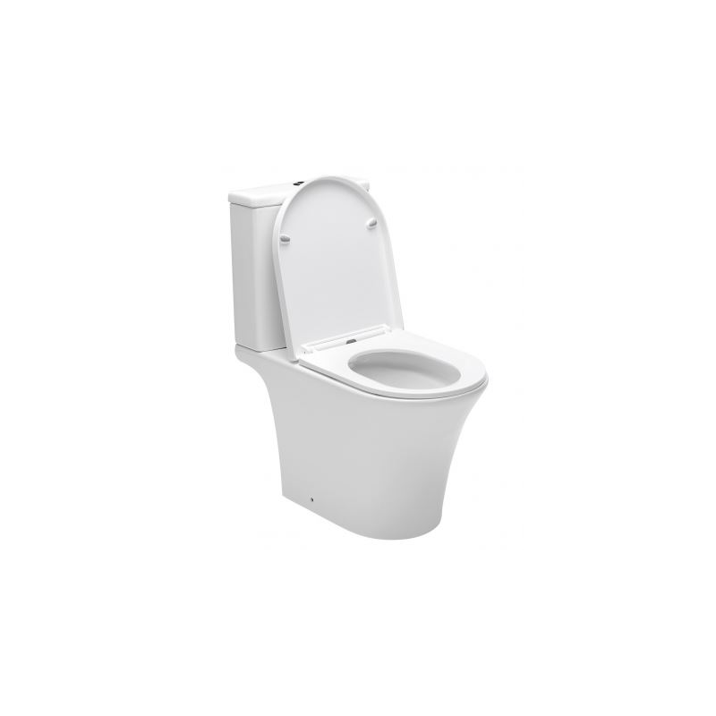 il est doté d'une cuvette sans bride (rimless) avec vidage universel, d'un réservoir avec mécanisme de chasse et d'un abattant à fermeture douce (softclose) et déclipssable. Le kit de montage est inclus dans le pack.